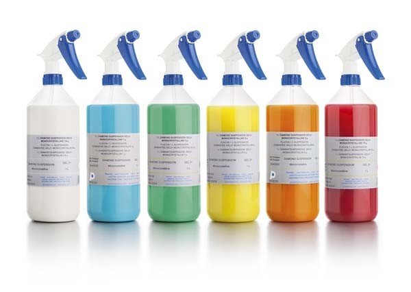 Comes in a spray bottle. Coloured water base diamond gel, monocrystalline. For the polishing of semi-hard and ductile materials. Ready for use, no need to add lubricant.